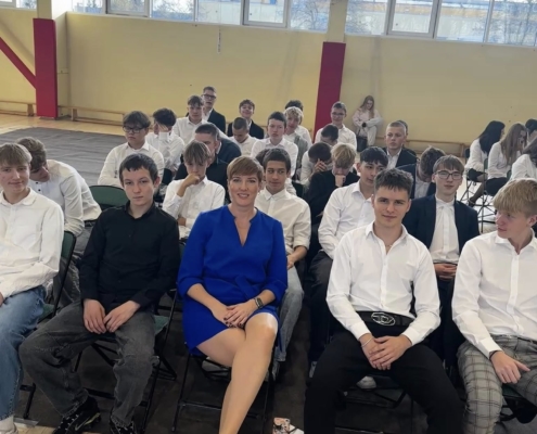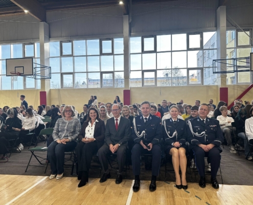 W uroczystości udział wzięli przedstawiciele kierownictwa Komendy Miejskiej Policji w Toruniu w osobach: I zastępca Komendanta Miejskiego Policji w Toruniu pan komisarz Tomasz Markowski, naczelnik wydziału prewencji mł. inspektor Maciej Szmalter oraz komisarz Małgorzata Olewińska. Urząd Miasta Torunia reprezentowała dyrektor Wydziału Edukacji pani Iwona Muszyńska.