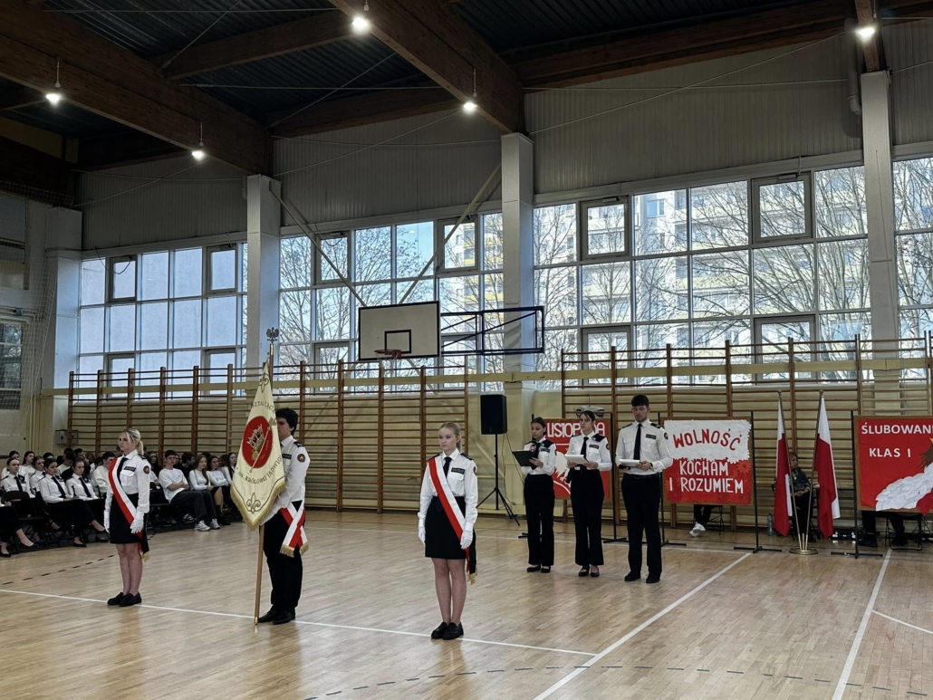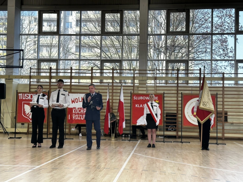 Było to bardzo ważne wydarzenie w życiu szkolnej społeczności- chwilia, w której nowi uczniowie oficjalnie dołączyli do grona uczniów II Liceum Ogólnokształcącego składając ślubowanie na sztandar szkoły. Uroczystość uświetnił pokaz musztry paradnej w wykonaniu oddziału reprezentacyjnego klas policyjnych, który w tegorocznym Ogólnopolskim Przeglądzie Musztry Klas Mundurowych zajął I miejsce w województwie i reprezentował miasto Toruń w etapie centralnym konkursu. Drużyna przygotowana pod kierunkiem pana Tomasza Kaczora oraz pani komisarz Małgorzaty Olewińskiej kolejny rok z rzędu zdeklasowała  wszystkie zespoły występujące w eliminacjach wojewódzkich uzyskując tym samym najlepsze noty za wykonanie programu obowiązkowego i układu dowolnego.