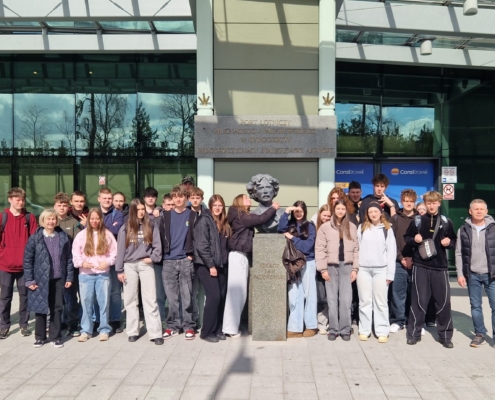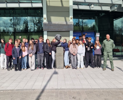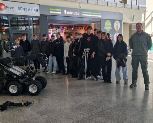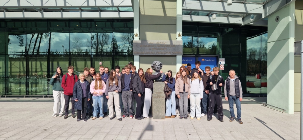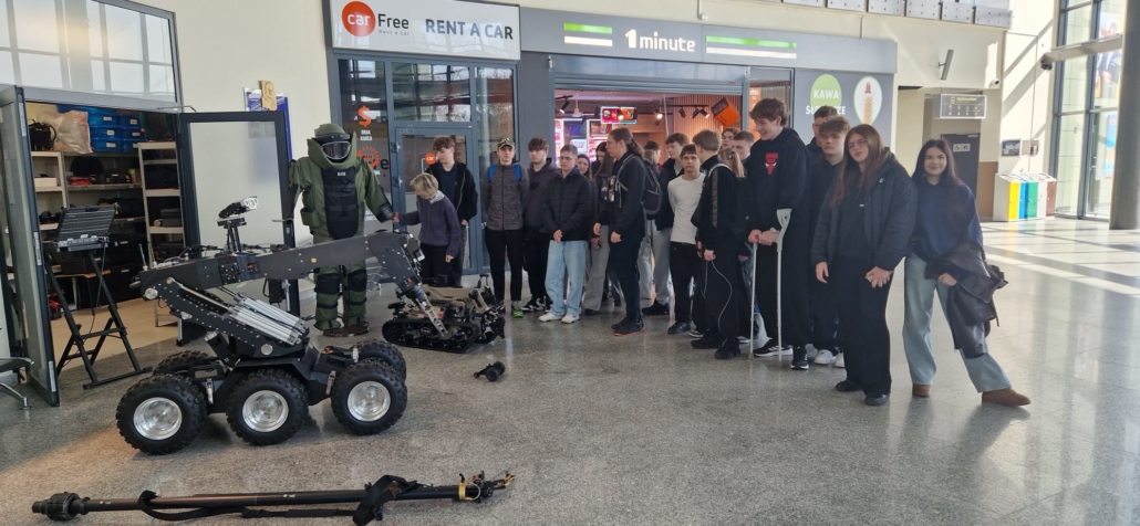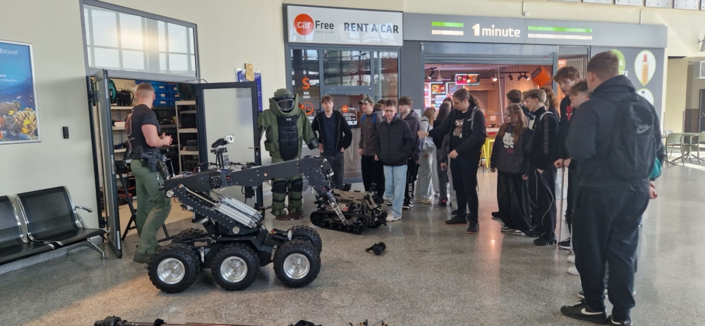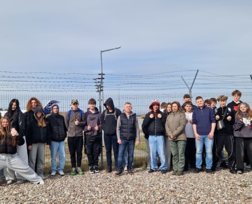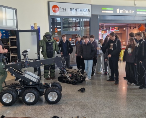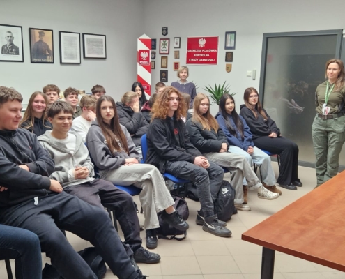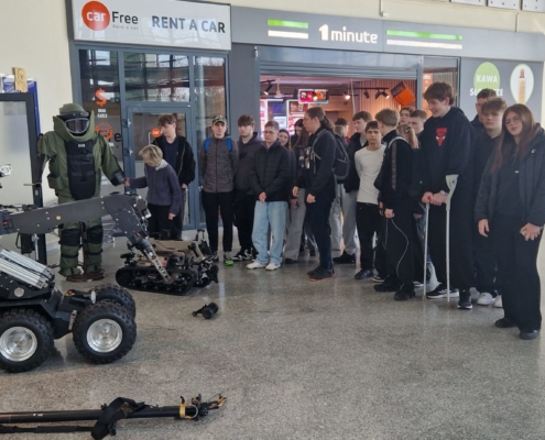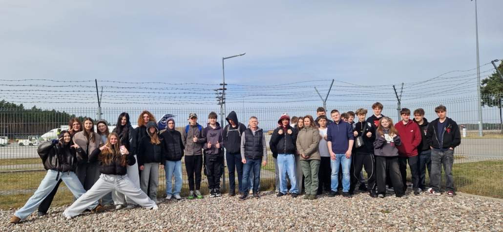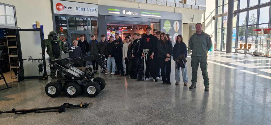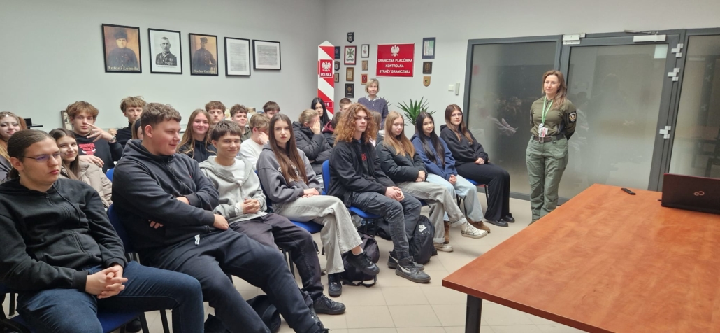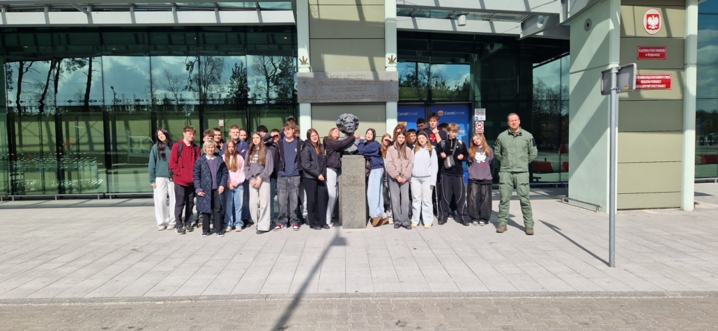 W dniu 30 marca 2026 r. uczniowie klasy mundurowej 1 A II Liceum Ogólnokształcącego uczestniczyli w szkoleniu na terenie Portu Lotniczego Bydgoszcz S.A. w Białych Błotach. Spotkanie zostało zorganizowane we współpracy ze Strażą Graniczną. Podczas wizyty uczniowie mieli okazję zapoznać się ze specyfiką służby funkcjonariuszy Straży Granicznej realizujących zadania na lotnisku. W ramach szkolenia mundurowego przedstawiono m.in. zasady kontroli bagażu, weryfikacji dokumentów podróżnych oraz omówiono przebieg codziennej służby na przejściu granicznym. Szczególnym zainteresowaniem cieszyła się prezentacja specjalistycznego sprzętu wykorzystywanego przez funkcjonariuszy, w tym wyposażenia pirotechnicznego. Wizyta stanowiła cenne doświadczenie edukacyjne, pozwalające na poszerzenie wiedzy teoretycznej oraz lepsze zrozumienie odpowiedzialnej i wymagającej służby w Straży Granicznej.